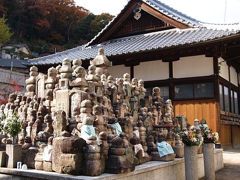 境内には平清盛の孫師盛を供養したと伝えられている塚と石板仏がある。