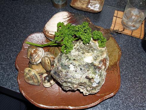 明石蛸 子鮎の天ぷら 豚足のあぶり焼き 岩がき あさり など